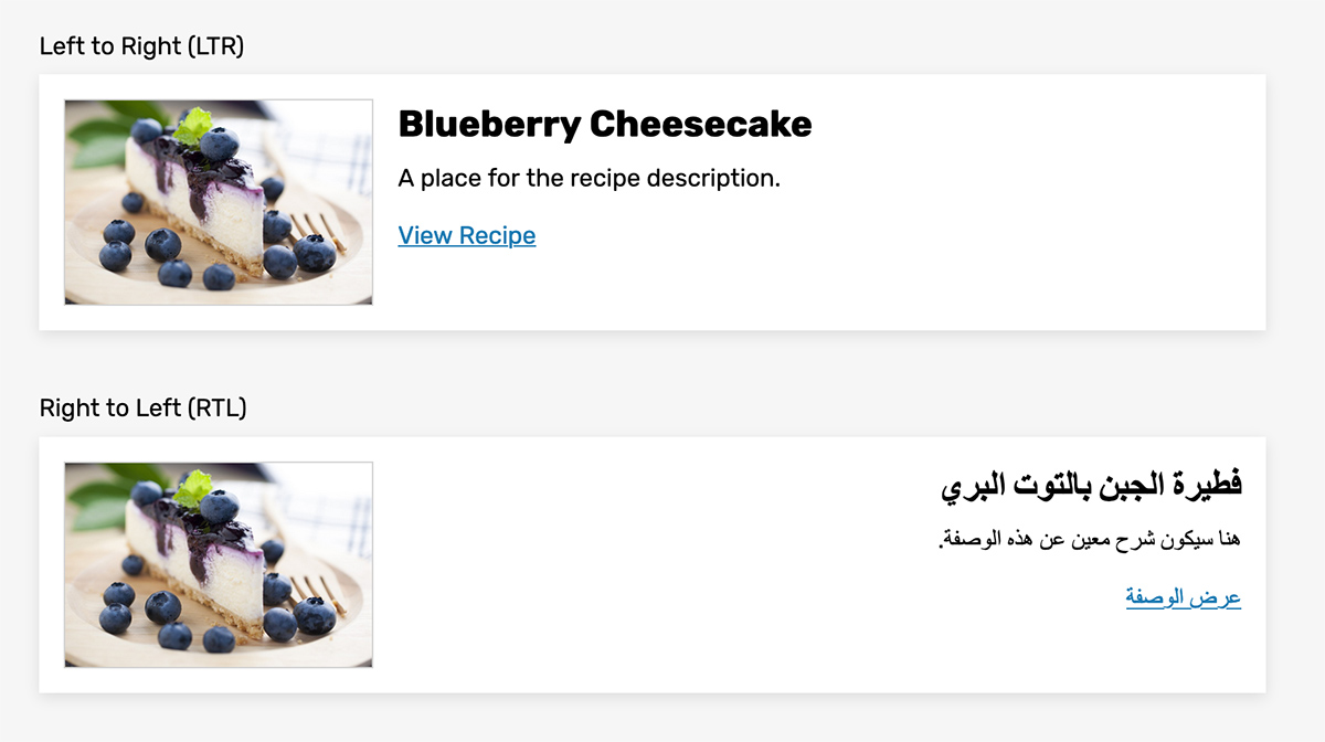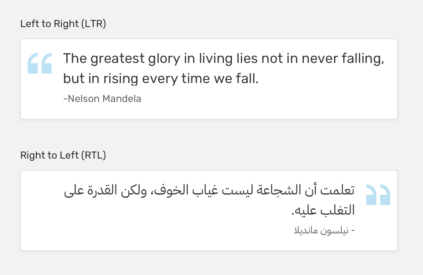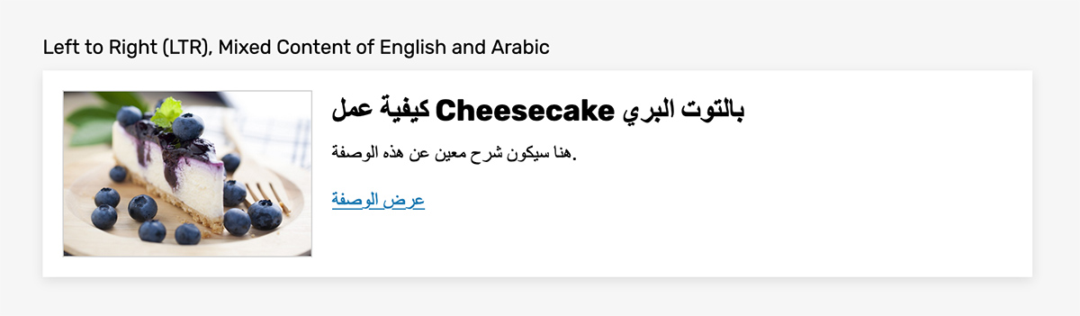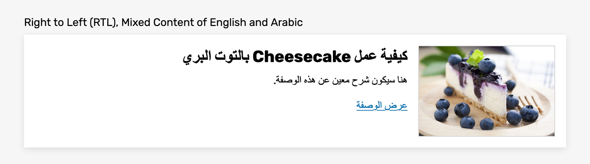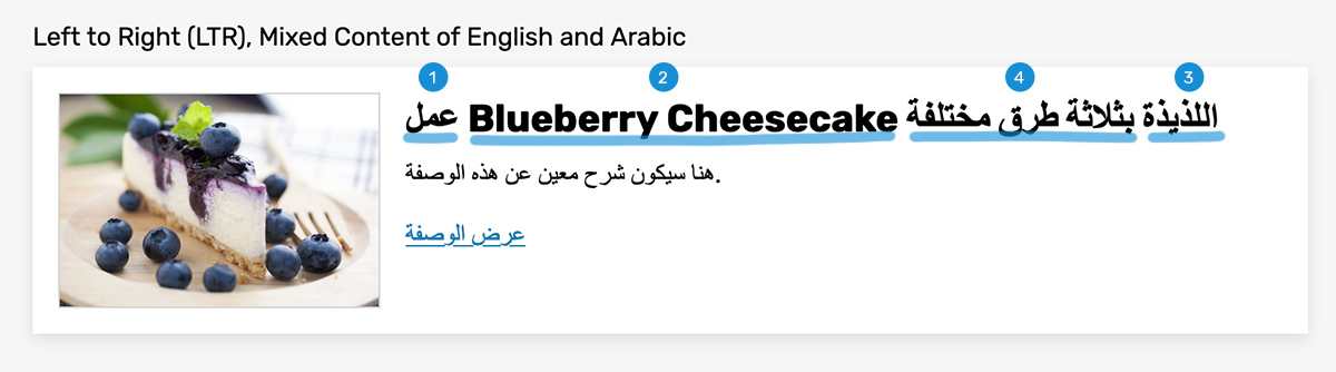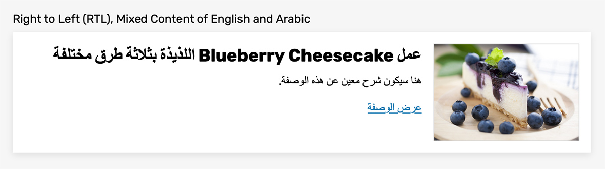 After we add dir="rtl" for the Arabic element, the result looks like this: