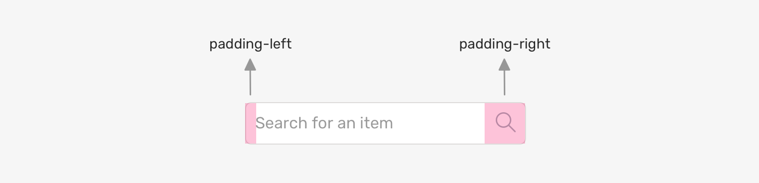 Also, when the user types in the search box, the text shouldn’t slide under the icon. To avoid this, add padding on either the right or left side.
