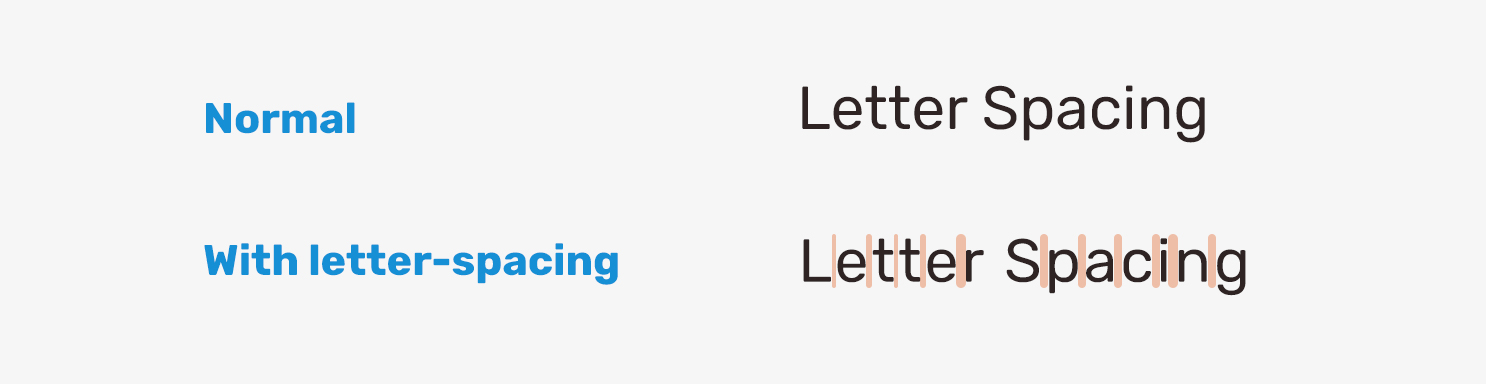 In English, it’s common to add letter-spacing to adjust the letters of a word. It’s also known as tracking in typography. Consider the following example for English content. It looks normal.