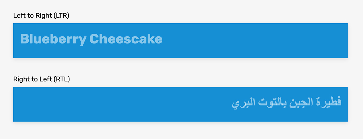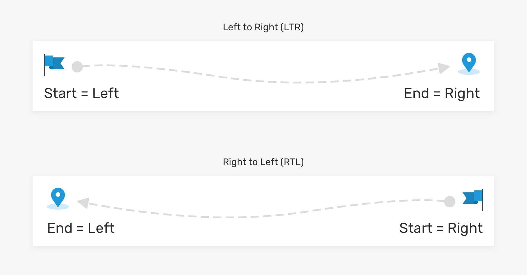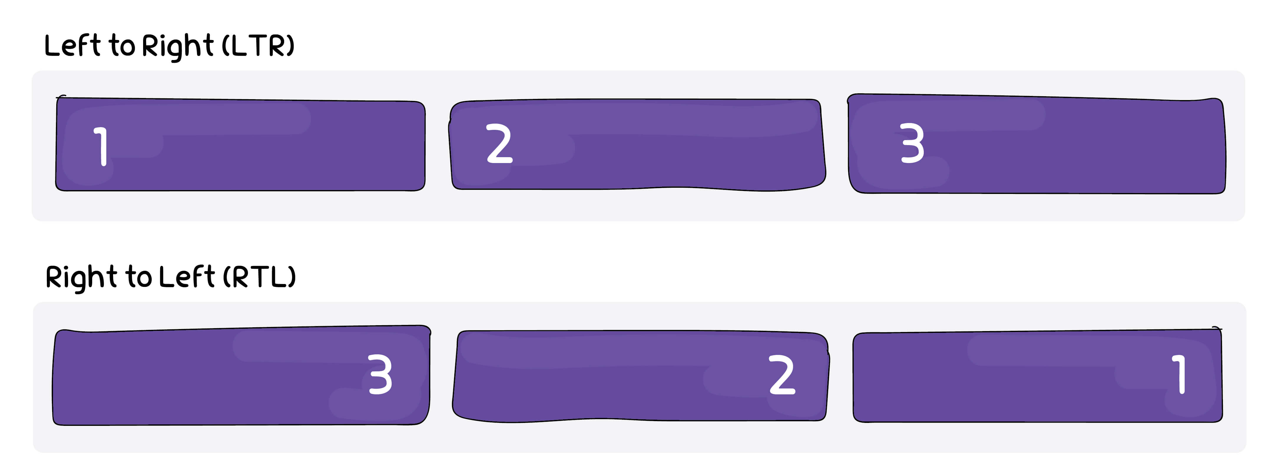 In addition to setting the dir=rtl attribute on the HTML element, we may also add direction: rtl as a CSS style.