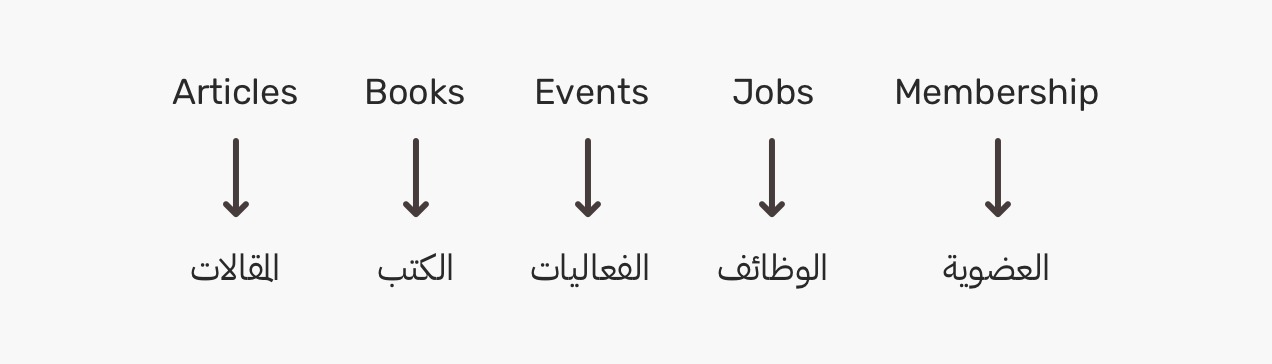 Sometimes, when a website is translated into Arabic, the sizing of elements changes due to some words becoming bigger or smaller after translation. Consider the following example, in which I’ve mocked up the navigation of Smashing Magazine’s website.